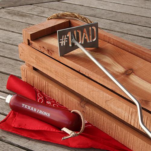 Any coffee mug can claim Dad is #1, but only a branding iron gives him an official seal. This handsome BBQ brand features the #1 Dad title - perfect for Dad to leave his mark on just about anything. Made of durable 304 grade stainless steel with a solid wood handle, it's designed to withstand even the hottest grilling heat. A great conversation piece at any cookout!